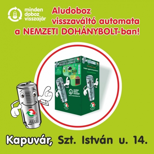 Újabb mérföldkő a kapuvári környezetveédelemben, melyet ezúttal egy helyi KFT-nek köszönhetünk. Októbertől ugyanis, már az aluminium italos dobozokat pénzért vissza váltják Kapuváron, az Ősze Trafikban. Az aludoboz visszaváltó automata 3 Ft-ot dobozonként. Nem is az összeg nagysága a számottevő, hanem inkább az a gondolkodásmód, ami példaértékű. Most már csak a szelektív gyűjtésre kellene odafigyelni a lakosságnak, és városunk, földünk is élhetőbbé válhatna. (Németországban például sok PET palack betétdíjas, és visszaváltható. Ami sokszor annyit tesz, hogy a palackért többet kell fizetnünk, mint a benne tárolt folyadékért. Ilyenkor bizony meggondolja az ember, hogy a szemétbe szórja a műanyagot, vagy inkább vissza vigye a szupermarketbe.)Twitter
