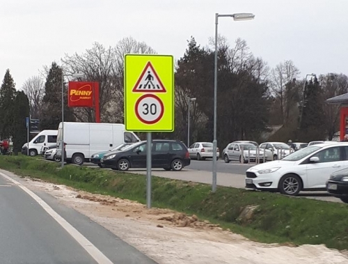 A Magyar Közút Nonprofit Zrt. a gyalogátkelőtől 100 méterre nagy méretű fényvisszaverős sárga alapon elhelyezett 30-as táblát helyezett ki, ezzel igyekezve felhívni az autósok figyelmét a veszélyes helyre, és kötelezve őket a lassabb haladásra. Ez mind jó, és remélhetőleg hasznos, aminek már réges-rég megkellett volna történnie.