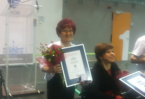 A fogyatékos emberek világnapja alkalmából a sérültséggel élők érdekében végzett több évtizedes áldozatos karitatív munkásságáért Török Lászlóné Erzsike, Győr Város Ezüst emlékérmet és a vele járó oklevelet vehette át dr. Fekete Dávid Győr Alpolgármesterétől. Ezúton is gratulálunk Erzsikének, és köszönjük áldozatos tevékenységét! És egyben további jó egészséget kívánunk! Twitter