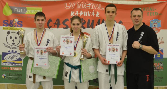 Beindult a Castrumos gépezet. Külföldön remekeltek a kapuvári karatésok. 24 versenyző 7 arany-, 8 ezüst -és 6 bronzérmet hozott. A szlovákiai EKEL-re utaztak városunk karatésai. 24 versenyzővel neveztek, így az egyik legnépesebb csapatként képviselték Magyarországot, a 2016-os IV. MAYOR SHINKYOKUSHIN KARATE Bajnokságon. A Slovakian Openen 5 nemzet (Szlovákia, Horvátország, Csehország, Lengyelország és Magyarország) karatékái vívták csatáikat, a kissé alul méretezett sportcsarnokban. A 300 feletti indulói létszám igazán megérdemelt volna egy méretesebb helyszínt, de a szlovák rendezőket is váratlanul érte a verseny népszerűsége. Bemutatkozhattak a legfiatalabbak is A Castrum 10 fős kezdő csapata is belekóstolhatott a versenyzésbe. Molnár Imre és Pappné Kovács Edit vezetésével rengeteg tapasztalatot, és nem utolsó sorban érmeket gyűjtöttek a fiatal Castrumosok. Érmeseink (1 arany-, 5 ezüst- és 4 bronzérem): Szarka Máté : I. helyA legfiatalabb Castrumos versenyzők Molnár Bettina: II. helyFülöp Marcel: II. hely Hámori Csongor: II. hely Kozma Rebeka: II. hely Kozma Maja: II. helyJerkó Jázmin: III. hely Papp Csanád: III. hely Szarka Dániel: III. hely Hámori Bence: III. hely Küzdöttek és győztek a Castrum utánpótlás harcosai A tapasztalt versenyzők külön kategóriákban mérték össze tudásukat, a hasonló képességű társaikkal. Lehetett örülni, és tapsolni a kapuvári sikereknek. Aranyérmesek: Orbán Balázs Németh Raul Szalai Benedek Szalai Sámuel Ezüstérmesek: Kozma Levente Kozma Gergő Bronzérmesek: Papp Csongor Molnár Balázs Hozták a juniorok az elvárt eredményt Pantelics Bence, Végerbauer Roberta, Németh Márk és Pantelics Péter A Castrum 3 fős junior gárdája szépen osztotta a vazarikat, ipponokat a Szlovák Openen. Ez a versenyük, egy fontos felkészülő állomás az április elei Diákolimpia Döntőnek, illetve az azt követő SWISS OPEN-nek, az idei Kyokushin Európa Bajnokság előtt, melyet Grúziában rendeznek. Pantelics Bence idén is megszerezte a Szlovák Bajnoki címet. Németh Márk lemaradt a dobogó tetejéről, neki ezüstérem jutott. Végerbauer Roberta miután sorra győzedelmeskedett a nehézsúlyú női juniorok közt, bevállalt még egy felnőtt Super Fightot is, ahol szintén győzelemmel kamatoztatta technikáit. A juniorok 2 aranyérmet, és egy ezüstérmet hoztak Kapuvárra. A Castrum edzői gárdája elégedett lehet a 7 aranyéremmel, 8 ezüstéremmel és a 6 bronzéremmel. Az egyesület eredményeit, és a gyerekek sikereit az alábbi cégek támogatják: Twitter