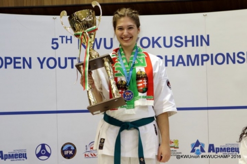 December 3-4-n rendezték meg Várnában az 5. KWU Utánpótlás karate Világbajnokságot, ahol a Castrum SC Kapuvár versenyzője, Végerbauer Roberta a junior női abszolút kategóriában aranyérmet szerzett. Igazán sikeresen zárta a 2016-os esztendőt a Castrum. A számos nemzetközi sikert követően világbajnoki címmel tértek haza Kapuvárra Bulgáriából. A kétnapos versenyen összesen 666 versenyző indult, 34 országból. 4 Világszervezet legjobb utánpótlás versenyzői vettek részt a világbajnokságon. A verseny Knock Down szabályrendszerben zajlott, a kyoksuhin karate felnőtt szabályaihoz hasonlóan. Egyetlen különbség, a védőfelszerelések használata. A rúgások, ütések teljes erejűek, cél az ellenfél ártalmatlanná tétele a kyokushin szabályok betartásával. Kapuvárról 3 versenyző és egy edző képviselte a Magyar KWU Nemzeti Válogatottat, amit további 5 székesfehérvári sportoló egy edző és egy bíró egészített ki. A Castrum junior versenyzői: Pantelics Bence, Végerbauer Roberta és Bán Lili Út a Világbajnokságig Év végére teljesen kimerült a kapuvári karatésok kasszája, ezért a kezdeti kilátástalan helyzetet pályázatírással és a támogatók keresésével sikerült áthidalniuk. A sikeres egyesületet ezúttal a Szerencsejáték Service Nonprofit Kft is segítette a versenyen való részvételben, a Vital-Feed Kft és a Rajkai Takarékszövetkezet mellett. Bár a versenyzők egy kimerítő esztendő végén jártak, mégis teljes erőbedobással készültek erre a világversenyre is. Megtiszteltetés a hazát képviselni Pantelics Bence a nemzeti lobogóval, a bevonulón4 Világszervezet legjobb utánpótlás versenyzői érkeztek Várnába, hogy összemérjék tudásukat a 2 évente megrendezendő világbajnokságon. (A könnyűsúlyú junior női mezőnyben pl. Bán Lili 32-es tábláról igyekezett a dobogó felé. Megjegyzés: - Női mezőnyben ekkora létszám elég ritkának számít!) A profin megszervezett versenyen csupán egy gond akadt. A versenyzők létszáma, és a tatamik száma. Így eléggé elhúzódott az amúgy is két naposra tervezett verseny. Junior férfi -70 kg-osok csatája Pantelics Bence a versenyre 1 hetes betegséget követve érkezett, így nem igazán volt ereje tejében. Ennek ellenére megszerezte a verseny leggyorsabb KO-ja címet. 6 mp-en belül villálmgyors fejrúgással KO-zta perzsa ellenfelét. A nyolcad döntőbe jutását azonban megakadályozta orosz ellenfele, aki egy fejre mért "balta rúgással" némi orrvérzést okozott a kapuvári fiúnak. Mivel a rúgást követően sem állt meg Bence, ezért az orosz fiú nem kapott pontot a találatért, viszont a vérzés erősen akadályozta a Castrumos karatéka légvételét. Végül bírói döntéssel maradt alul a későbbi -70 kg-os junior világbajnok Vladimir Olekhovval szemben. Pantelics Bence így a világbajnoskág 9. helyén végzett. Pantelics Bence villám KO-ja Junior női -55 kg Bán Lili kőkemény csatát vívott Bán Lili csatábanA veszkényi Bán Lili még soha ekkora létszámú mezőnyben nem indult. 32-es tábláról igyekezett 2 másik magyar (Dezső Kata és Kreitl Kitti - Székesfehérvár) versenyzőtársával a dobogó felé. Sajnos pont a japán Mikoto Fujimaki-t kapta meg első körben, akivel kőkemény háromszor két perces "állóháborút" vívtak. Egyikük sem volt hajlandó egy tapottat sem hátrálni, mindkettőjükben hatalmas volt a győzni akarás. Végül a bírók a fekete öves japán versenyzőt engedték tovább, aki a VB-n ezüstérmet szerzett. Végerbauer Roberta Világbajnok! A Castrum nehézsúlyú bajnokának küzdelmére csak vasárnap került sor, a nagy versenyzői létszám miatt. Roberta teljesen higgadtan, kipihenve készült a küzdelmeire. A döntőbe bejutva előbb a kazah Valeriya Krestina-t búcsúztatta végig irányítva a küzdelmet, majd az utolsó 30 mp-ben is erőteljes pörgéssel, és az utolsó mp-ben elengedett remek fejrúgással jutott a döntőbe. Edzőjének 20 perces motívációs beszédét követően harciasan kezdve indult a világbajnoki címért. Előbb egy köríves fejrúgással szerzett wazarit, majd pedig egy guruló forduló rúgással érdemelte ki az ippont, és ezzel a junior női nehézsúly világbajnoki címét! Végerbauer Roberta döntő küzdelme Magyarország megszerezte első KWU világbajnoki aranyérmét, melyet a Castrum SC Kapuvár versenyzője, Végerbauer Roberta érdemelt ki. Pantelics Péter edző megígérte a versenyzőknek, hogy a 2016-os esztendő hátralevő napjai ténylegesen pihenéssel telnek, hiszen az évben igazán kitettek magukért a castrumos harcosok. "1992-ben ugyanebben az arénában képviselhettem Magyarországot az Európa Bajnokságon. 24 év után újra találkoztam akkori ellenfelemmel Asen Asenovval, az akkori bolgár nehézsúlyú bajnokkal. Most a fiamat, és versenyzőimet kísérhettem el, és vehettem revansot az akkori bírói ítéletért."- mesélte Pantelics Péter edző portálunknak. A Castrum versenyzői és a támogatóik! Bán Lili, Végerbauer Roberta, Pantelics Bence és Pantelics Péter edző (hátul) További képek és információk a Castrum SC Facebook oldalán >>>Twitter
