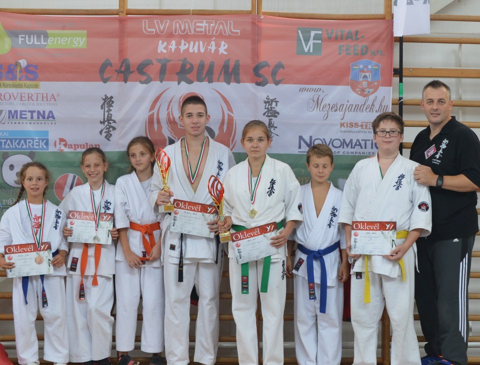 Szombaton rendezték Jászberényben az I. Y. Motiváció Országos Bajnokságot, ahol a Castrum SC 7 versenyzője 2 arany-, 1 ezüst- és 2 bronzérmet szerzett az ősz első utánpótlás versenyén. Díjaikat a Kyokushin karate magyar Világbajnok legendáitól vehették át! A versenyre az ország minden pontjáról érkeztek karatékák, hogy találkozhassanak hazánk 3 női kyokushin karatés világbajnoknőivel, (Dr. Szepesi Csenge 2x Világbajnok, 4x Európa - és 4x Magyar Bajnok, Sztankó Rita 3x Világkupa győztes, 2x Európa-, és 6x Magyar Bajnok, Szövetes Veronika Világbajnok, 2x Világkupa győztes, 7x Európa és 8x Magyar Bajnok.) valamint Shihan Furkó Kálmánnal, a magyar Kyokushin 8. danos mesterével. A remek szervezésű versenyen már a Castrum fiataljai is győzelmekkel mutatkoztak be. Szücs Hanna ezüst-, míg Németh Virág bronzérmet harcolt ki a Gyermek I. Női könnyűsúly kategóriájában. Hoffer András a serdülő nehézsúlyban állhatott a dobogó harmadik fokára. Németh Jankó a Gyermek I. fiú -36 kg-os korcsoportban 5. helyezést ért el. Bán Lili ipponokkal szigorúan, utasította maga mögé a junior női könnyűsúly versenyzőit, hasonlóan Pantelics Bencéhez, aki a junior férfi 75 kg-os kategóriában állhatott a dobogó legfelső fokára. "Örülök, hogy sportolóink személyesen is találkozhattak a Magyar Kyokushin karate élő legendáival, és motivációval tele folytatják a felkészülést a további őszi versenyekre. Ez támogatóinak, és az Új Európa Alapítvány tehetségtámogató programja nélkül ez nehezen lenne kivitelezhető." - nyilatkozta Sensei Pantelics Péter a Castrum edzője, és elnöke. További képek, a Castrum SC facebook oldalán >>> Twitter