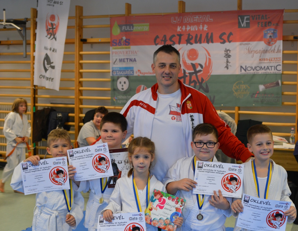 Sokat lehet olvasni a Castrum SC karate sikereiről. A bajnokok neve újra és újra feltűnik egy-egy médiában. Ám ezúttal új neveket kell megjegyeznie olvasóinknak. Szántó Ádám, Serfőző Lia, Hadarics Ferdinánd, Mészáros Zalán, Kiss-Mihály Bálint. Ők a legfiatalabb Castrumos versenyzők, akik már Budapesten is részt vettek az Újbuda Kupa Bajnokságon. 3 aranyérmet és 2 bronzérmet harcoltak ki, a legfiatalabbak. Igazi versenyhangulatba kóstolhattak bele a Castrum Ovikaratés harcosai, november 25-én szombaton Budapesten. Peti Sensei az utánpótlás karatésai mellett, a legfiatalabbakat is a küzdőtérre vezette. Míg idősebb társaik testpajzsos küzdelemben vettek részt, addig a legfiatalabbak a Csipeszharcban próbálhatták ki magukat. A Castrum Ovikaratésai Hadarics Ferdinánd, Serfőző Lia és Szántó Ádám aranyérmet, Németh Zalán, Kiss-Mihály Bálint pedig bronzérmet szereztek. Mi is az a Csipeszharc? 2-2 csipesz van felcsíptetve a versenyzők felkarjára és térde fölé. Az 1 perces küzdő idő alatt ezeknek a megmaradására kell vigyázniuk, illetve ellenfelükről begyűjteni a csipeszeket. A versenyt 3 bíró felügyeli, és dönti el, ki volt a gyorsabb, pontosabb és ügyesebb. Döntetlen esetén, vagyis ha egyforma számú csipeszt gyűjtöttek a versenyzők, hosszabbítás következik az ún. "ARANY CSIPESZÉRT"! Aki elsőnek szedi le a másikról a csipeszt, az győz. Ez a játék remek versenyzési lehetőséget kínál a legfiatalabbaknak, mivel itt próbára tehetik harciasságukat, küzdőszellemüket. Tanúbizonyságot adhatnak gyorsaságukról, és mentális felkészültségükről is. A Csipeszharc után az Utánpótlás remekelt Az öt Ovikaratés mellett 11 utánpótlás harcos is tatamira lépett a délután folyamán. Ők testpajzsban, a Kyokushin karate szabályai szerint vívták küzdelmeiket, melyben megintcsak a gyorsaság, pontosság és technikai felkészültség dominálhatott. A kapuvári karatésok nagyon szépen szerepeltek, és gyűjtötték a wazarikat, majd pedig a csillogó érmeket. Aranyérmesek: Németh Virág, Szücs Hanna, Nyikos Eszter, Fandák Ajándék Ezüstérmesek: Kovács Kitti, Bacsó Márton és Csonka Lili (utóbbi versenyző a különdíjat is kiérdemelte teljesítményéért!) Bronzérmesek: Serfőző Hanga, Serfőző Zalán, Németh János és Bertha Lili "- Nem hiszek a véletlenekben. Legalábbis a küzdősporteredmények terén nem. Ha a fiatalok megkapják azt a terhelést, és felkészítést ami az életkorukhoz, és képességeikhez elvárható, akkor az eredmények nem maradnak el. A Castrum élversenyzői, mint Németh Veronika, Pantelics Bence, Végerbauer Roberta, Bán Lili és Németh Márk mögött ott dübörög az utánpótlás. Méltó példaképek a fiatalok számára, akik együtt készülnek a versenyekre. Öröm látni ahogy az Ovikaratésok felnéznek az Európa bajnokokra (holott ők még azt sem tudják, mi az az Európa), és nem csak az edzéseken találkoznak egymással, hanem a Castrumos partikon, családi rendezvényeken is közösen ünnepelnek. A Castrum nem csak egy sportegyesület, hanem egy nagy család, egy erős közösség, ahol kicsinek, nagynak kiérdemelt helye van!" - nyilatkozta Sensei Pantelics Péter edző December 2-án Várpalotán, a 2017-es Palota Kupán versenyeznek az utánpótlás harcosok 13-an. Itt a fiatalság mellett egy 46 éves karatéka is megméretteti magát, Felnőtt C kategóriában. December 6-án pedig Németh Veronika edzőjével az oroszországi Ekatyerinburgba utazik, ahol a 3. KWU Súlycsoportos Világbajnokságon méri össze erejét 4 Világszervezet legjobb versenyzőivel. Twitter