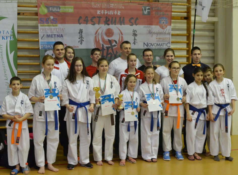 Vasárnap rendezték Várpalotán a Kyokushin karate Diákolimpia elődöntőt, melyre 29 egyesületből 300 feletti nevezés érkezett. A Castrumot képviselő 13 fős versenyző csapatból kilencen életükben először indultak a Magyar Diáksportszövetség rangos versenyén. A Castrum fiataljai 2 arany-, 1 ezüst- és 3 bronzérmet szereztek. Az Országos Kyokushin Diákolimpiát két területi selejtező előzi meg. A Dunántúli régió elődöntőjére idén is sokan érkeztek. A Castrum SC Kapuvár 13 fős csapatából kilencen most indultak először ezen a versenyen. Volt olyan is, aki betegen vállalta a részvételt, csak azért, hogy majd a döntőben bizonyíthasson. A kapuvári fiatal utánpótlás csapat ennek ellenére szépen szerepelt, és csaknem teljes létszámban biztosították részvételüket az április 14-én, a Veszprémi Arénában megrendezésre kerülő Diákolimpia döntőben. Aranyérmesek: Bán Lili és Németh Virág ezüstérmes: Szücs Hanna, Bronzérmesek: Szalai Kitti, Fandák Ajándék és Csonka Lili Végerbauer Roberta kategóriájában ezúttal nem volt más induló, így ő majd csak a döntőben tud küzdelmével bizonyítani. A korábbi Castrumos DOL bajnokok pedig más területen vették ki részüket e jeles napon. Míg Pantelics Bence bíróként jeleskedett, addig Németh Veronika már a Castrum 2. vonalának edzői munkájában segített mesterének, Sensei Pantelics Péter edzőnek. Gratulálunk a csapat szép ereményéhez! További képek a Castrum facebook albumában >>>Twitter