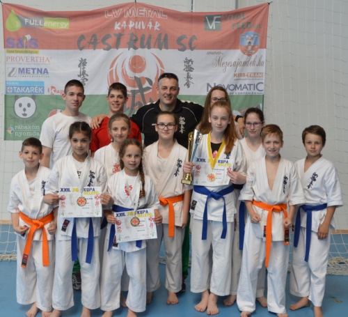 A tavaszi versenyszezon utolsó országos Kyokushin karate bajnokságán a XXII. J&S Speed Kupán Tatán, a Castrum SC Kapuvár fiatal versenyzői 1 arany-, és 2 ezüstérmet gyűjtöttek. A fiatal kapuvári versenyzői gárda 3 éremmel gazdagította a Castrum érem „raktárát” azon az országos bajnokságon ahol 3 ország 34 egyesületének 367 nevező karatékája vett részt. A felkészítő versenyeken is ügyesen szereplő csapat, most ebben a mezőnyben is megállta a helyét. Fandák Ajándék a serdülő lány kategóriában szerzett aranyérmet, míg Serfőző Hanga Niobé a Gyermek II., Németh Virág pedig a Gyermek I-es kategória ezüstérmét vívta ki magának a küzdelmekkel teli nap során. „- Elégedett vagyok versenyzőim eredményével. Még azokéval is, akik most ebben a népes mezőnyben nem jutottak el a dobogóra. Az élet nem áll meg a Castrumban a nyáron sem, mivel a helyi vállalkozók segítségével folytatjuk edzőtermünk bővítését, és készülünk az övvizsgákra, nyári edzőtáborokra. Itt már az őszi versenyszezon sikereinek megalapozására fektetünk fő hangsúlyt. Egy biztos, a „bentalvós tábor” nem maradhat el, és az sem kizárt, hogy idén ebből akár többet is szervezünk, mivel a sportolóinknál megvan rá az igény.” – nyilatkozta Sensei Pantelics Péter a Castrum SC Kapuvár elnöke, és edzője.Twitter