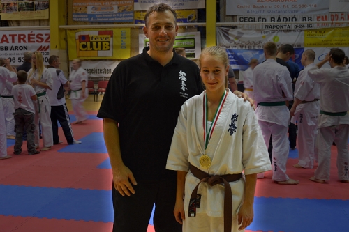 4 ország 132 versenyzője mérte össze tudását 2013. szeptember 28-án, a ceglédi sportcsarnokban megrendezett Sysman Open nemzetközi kyokushin karate versenyen. A Castrum SC Kapuvár ifi versenyzője, Németh Veronika a női könnyűsúlyban diadalmaskodott egymás után háromszor. Román, magyar és szlovák ellenfeleit is magabiztosan győzte. A kapuvári gimnazista lány, ezzel az eredményével kvalifikálta magát, a november 15-én Romániában megrendezésre kerülő U22, és Ifi Kyokushin Európa Bajnokság indulói közé. Vercsi mindhárom küzdelmét Ipponnal (2 félpont) nyerte. A küzdelmekben az volt a legjobb, hogy mindegyik ellenfél más - más küzdőstílust használt. A sokat mozgó fürge lábú román, a kézzel sűrűn dolgozó magyar, és a statikusabb küzdőstílusú szlovák lány sem tudta hárítani Veronika fejrúgásait.Szlovák ellenfelét például, a küzdőidő végét jelző csengőszóval egy időben rúgta még fejbe, hogy teljes legyen ott is az Ippon. A verseny után, egy vasárnapi pihenőnap következett, majd hétfőtől folytatódik a heti 8-10 edzéses felkészülés az Ifjúsági Kyokushin Európa Bajnokságra, majd az azt követő Utánpótlás Magyar Bajnokságra. - Veronikának a teljesítménye biztos mérföldkő, hogy a Magyar Nemzeti Válogatottat, és a Castrum SC Kapuvárt képviselje a novemberi Ifjúsági Kyokushin Európa Bajnokságon. 2012-ben 6 aranyérmet, és két ezüstéremt, míg 2013-ban eddig 3 aranyéremmel büszkélkedhet a kapuvári 9-es gimnazista. A 2013-as év "kevés " aranya nem Vercsi teljesítményét minősíti, hanem sajnos az egyesület anyagi helyzetét. Minden versenyre sajnos nem tudtunk elmenni- nyilatkozta Pantelics Péter a Castrum SC egyik utánpótlés edzője. Bővebb információ: www.castrumsport.hu Twitter