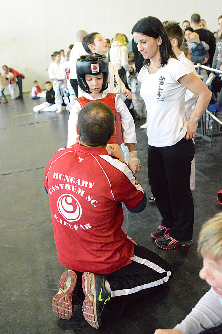 Kapuvár karatésai, már javában készülnek a márciusi Kyokushin Karate Diákolimpia elődöntőjére. Szombaton 19 fős versenyzői csapattal vonultak fel, a III. Renmei Kupa 2014 meghívásos Kyokushin Karate versenyen. 26 klub, 241 versenyzője harcolt a 4 tatamin. A Castrum legifjabbjai is kipróbálhatták magukat 3 héttel a Diákolimpia előtt. A kapuvári karatésok a szombati napjukat, a Tatabánya melletti Tarjánban töltötték, és barátságos, komolyabb tét nélküli versenyen mérték össze tudásukat társaikkal. A labdarúgásban amolyan edzőmérkőzésnek szokták nevezni az ilyent, de a küzdősportban ez mégis más. A gyerekek kisebb csoportokba osztva körmérlőzéseket vívtak ellenfeleikkel, így azok, akiknek esetlegesen nem sikerült az első küzdelem, még a következőkben javíthattak teljestményükön. Nagy jelentőséggel bírnak ezek a megmérettetések, mivel az új versenyzőknek szokniuk kell azt a környezetet, ahogy az adrenalinnal teli sportolók, bírók és edzők felfűtenek egy sportcsarnokot. Kiss Benedikta, Bárkovics Nóra, Papp Csongor, Dezamics Bence, Szalai Benedek, Dukai Norbert, Filó Bence, Gelbman Andreas és Bán Lili, is ügyesen helytállatak, a tatamin. A Castrum edzői, pedig kaptak egy képet a versenyzőkről, hogy a várpalotai Kyokushin Karate Diákolimpia Nyugat-Dunántúli elődöntőjéig, még mit kell gyakorolniuk, hogy hasonló szép eredményt, vagy még jobbat nyújtson a csapat. Castrum SC Eredmények: Gy.I. ffi_1: I. Király Zsolt Siófo KSENémeth Veronika nagyobb súlycsoportban is eredményes (jobbról) II. Papp Csongor Castrum III. Bódi Adám VTSE III. Kiss Márk Rakurai Gy.I. ffi_2: I. Szalai Benedek Castrum II. Schlauszki Adám ARSC III. Ráduly Botond BHMSE III. Fekete Bence BHMSE Gy.I. ffi_7: I. Németh Raul Castrum II. Ludszky Tamás Főnix Dojo III. Kocsis Bálint Enying VSE III. Dan Balázs Gyula Kamikaze S Gy.I. ffi_8: I. Dezamics Bence Castrum II. Faragó Barnabás VTSE III. Kiss Márk Gábor MKK III. Lencsés László Kamikaze S Gy.I. női_1: I. Kovács Vivien VTSE II. Bárkovics Nóra Castrum III. Leitner Petra Főnix Dojo III. Esztrenga H. Viktória BHMSE Gy.II.ffi_kzd_8: I. Dezamics Máté Castrum II. Dukai Norbert Castrum III. Borsodi Endre Castrum Gy.II.női_1: I. Molnár Brigitta Castrum II. Palcsó Szabina Siófo KSE III. Kiss Benedikta Castrum Gy.II.ffi_hld_1: I. Jerkó Dominik Castrum II. Markó Csanád Cs.S.E. III. Szabó Dániel MGK Se III. Pozsonyi Péter BHMSE Gy.II.ffi_hld_2: I. Jenei Bálint Sámuel BHMSE II. Szalai Sámuel Castrum III. Szücs Ferenc MGK Se III. Orbán Kevin Kiai Dojo Gy.II.ffi_hld_5: I. Virág Dániel MKK II. Ujj Misa BHMSE III. Németh Bendegúz Castrum Srd.ffi_kezdő_1: I. Capu Dominte Renmei se II. Bauer Bence Renmei se III. Elek Roland ARSC III. Gelbmann Andreas Castrum Srd.ffi_kzd_3: I. Palcsó Patrik Siófo KSE II. Filo Bence Castrum III. Marikovecz Attila Wasabi KKT III. Antal Krisztián Renmei se Ifj.ffi.hld_1: I. Körmendi Adrián Főnix Dojo II. Kovács Róbert Castrum III. Németh Márk Castrum Ifj.női_2: I. Rudniczai Vanda Siófo KSE II. Bán Lili Castrum III. Szekeres Nikolett Főnix Dojo Jun.női_hld: I. Németh Veronika Castrum II. Kovács Eszter Cs.S.E. III. Horváth Ramóna Kiai Dojo Többet szeretnél tudni az egyesületről? - www.castrumsport.hu Twitter