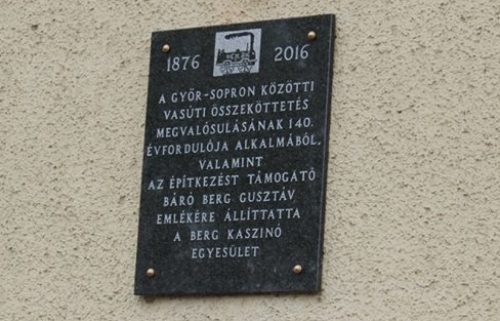 2016. május 1.-én tartott emléktábla avató ünnepséget a Berg Kaszinó Egyesület. Az ünnepségre a GYSEV Győr-Sopron közötti vasúti pályaszakasz átadásának 140. évfordulója alkalmából került sor. Báró Berg Gusztáv sok jót tett Kapuvárral. A vasútvonal építésében is jelentős részt vállalt. Városunk fiatal egyesülete igyekszik a múltat ápolni, és Kapuvár Széchenyijeként emlegetett Báró Berg Gusztáv tevékenységeit példaként állítani minden kapuvári számára. 1876. január 2-án átadott vasútvonallal Kapuvár is becsatlakozott, és szorosabb közlekedésbe lépett a világgal. A kapuvári Vasútállomás régen. (Fotó: Pavlóczki Béla)Twitter