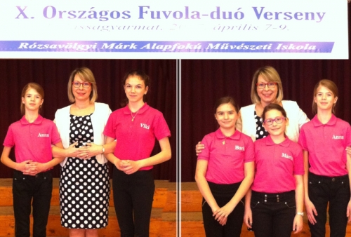 Április elején került megrendezésre Balassagyarmaton a X. Országos Fuvola- duó verseny, ahol Szücsné Vajda Réka növendékei kimagasló eredményt értek el. Töreki Anna, Szücs Márta Villő és Füzi Borbála trió kategóriában III. helyezést értek el, míg Márk Viktória és Töreki Anna a vegyes életkorú gyerekek duó kategóriájában megszerezték az I. helyezést és ezzel kivívták a győztesek gáláján való szereplés jogát. A kis csapat január óta készült lelkesen a megmérettetésre, amely az EMMI szervezésében három évente kerül megrendezésre. A versenyen a kiemelkedő tanulói teljesítmény mellett a felkészítő tanárok is kaptak elismerést. Nagy öröm iskolánknak, hogy Szücsné Vajda Réka tanári különdíjban részesült. Szeretettel gratulálunk a szép sikerhez!Twitter