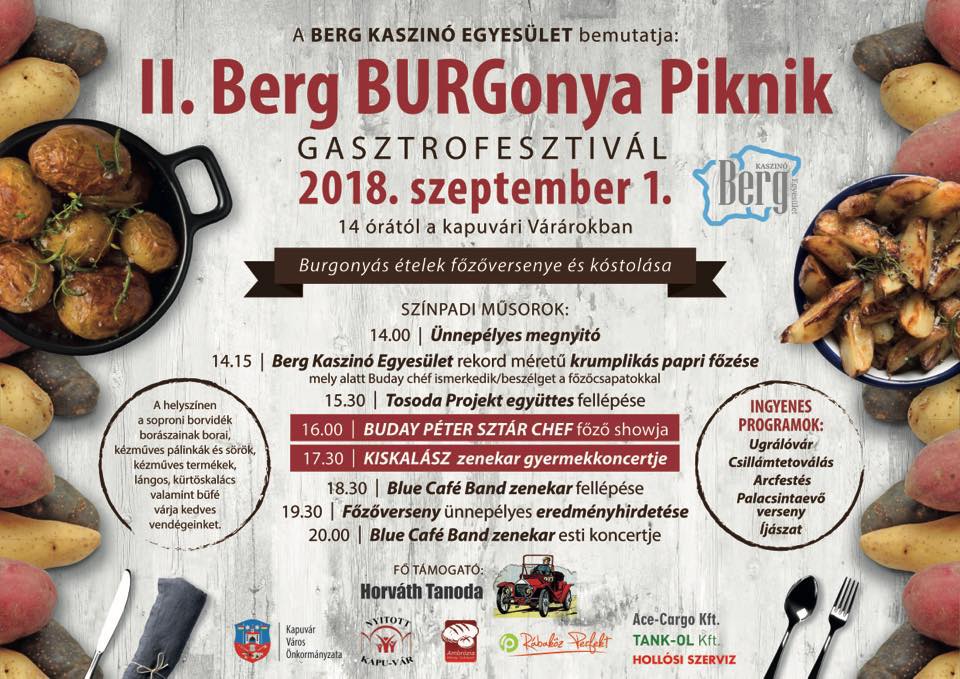 Második alkalommal kerül megrendezésre a Berg BURGonya Piknik a kapuvári Várárokban. Idén is rengeteg érdekességgel készültek a Berg Kaszinó Egyesület tagjai. Twitter