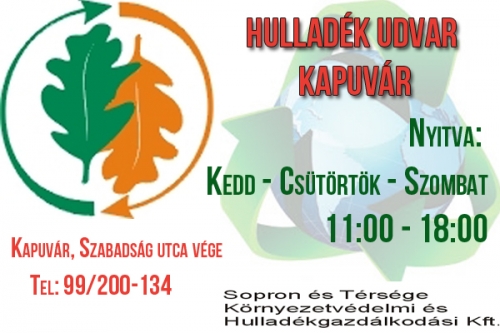 Ingyenesen helyezheti el hulladékát minden kapuvári lakos, akinek érvényes szerződése van az STKH Kft-vel. Legyen hungarocell, vagy akumlátor, a zöldudvarok átveszik a hulladékot. A Szabadság utca végén várják a lakosság szelektív szemetét. Sokáig kellett várni, de végre átadták! Tehát INGYEN (!) rakhatja le minden lakos a hulladékot, aki megfelel a lenti - könnyen teljesíthető - követelményeknek! Talán, ezzel a lehetőséggel megszűnnek végre az áldatlan állapotok a Margit híd utcában, és a Vasút soron, illetve az egyéb szelektív gyűjtők körül, melyet a "tisztelt" lakosság nyilvános szemétlerakónak használt! A Hulladék udvar Kapuváron várja a szemetet: Nem veszélyes hulladékok - papír és karton csomagolási hulladékok - műanyag csomagolási hulladékok - fém csomagolási hulladékok - üveg csomagolási hulladékok - termékként tovább nem használható gumiabroncsok - textíliák - kiselejtezett elektromos és elektronikus hulladékok - biológiailag lebomló hulladékok - lom hulladék Veszélyes hulladékok - Ásványolaj alapú, klórvegyületet nem tartalmazó motor-, hajtómű- és kenőanyagok - Veszélyes anyagokat maradékként tartalmazó vagy azokkal szennyezett csomagolási hulladékok - Veszélyes, szilárd porózus mátrixot tartalmazó fémből készült csomagolási hulladékok, ide értve a kiürült hajtógázos palackokat - Veszélyes anyagokkal szennyezett abszorbensek, szűrőanyagok, törlőkendők, védőruházat - Ólomakkumulátorok - Növényvédő szerek - Fénycsövek és egyéb higanytartalmú hulladékok - Elemek és akkumulátorok - Veszélyes anyagokat tartalmazó, kiselejtezett elektromos és elektronikus berendezések A hulladék átadója: • rendelkezik a Közszolgáltatóval megkötött érvényes hulladékszállítási szerződéssel és hulladékszállítási díjat fizet, • díjfizetési kötelezettségének eleget tett (díjtartozás rendezésére a Zöldudvarban is lesz lehetőség), • megfelelő módon tudja igazolni lakhelyének címét. A hulladék leadásához harmadik személy segítsége is igénybe vehető (pl. teherfuvarozó, szállító járművel rendelkező ismerős), azonban az azonosításhoz szükséges a személyes jelenlét, valamint a személyes okmányok. .... Társasházban saját tulajdonnal rendelkező személy, jogosultságát lakcímkártyával igazolja. Társasházban az ingatlant bérlőként használó személy a közös képviselő által kiállított igazolás alapján jogosult a hulladék elhelyezésére. Azon társasházak esetében ahol nyilvántartásunk szerint díjtartozás áll fent, a hátralék rendezéséig a társasházban lakók nem helyezhetnek el hulladékot. Nyitvatartás: Kapuvár: (Szabadság utca vége): k – cs – szo: 11-18-ig (99/200-134) Zöld hulladékok elszállítása Megfelelő , zöld színű zsákot kell vásárolni a COOP, vagy ÁFÉSZ boltokban, Vitnyéden a gazdaboltban. Egy zsák 170 liter, és 200 Forintba kerül. A gyűjtési napokon, április 22-én, május 6 és 20-án, az ingatlanok elé ki kell helyezni a zsákokat, és a 99 /506-483 as telefonszámon kell jelezni az igényt. Az elszállítás ingyenes. Ha kicsi a kuka, de több a szemét: Addig szabad rakni a kukát, hogy a fedél lehajtható legyen. A többlet szemetet STKH emblémával ellátott zsákba kell kihelyezni a kuka mellé, ürítési napokon. A zsák ára 600 Forint, ez is a vitnyédi gazdaboltban kapható. Az elszállítása ingyenes. Ezt nem kell bejelenteni, automatikusan elszállítják az STKH dolgozói! Kérem, osszák meg, tudassák minden kapuvárival! Vigyázzunk városunk tisztaságára, és ne resteljünk pár 100 métert autózni, hogy a szemét megfelelő helyre kerülhessen! [widgetkit id=8] Twitter