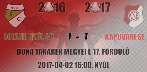 A Loland Nyúl otthonában fogadta Kapuvári SE felnőtt labdarúgó csapatát. 1:1 -es döntetlen született a 90 perc végén. Az 57. percben Horváth Róbert góljával sikerült vezetést szereznie csapatunknak. Sajnos az előnyt nem sikerült tartani. A 78. percben Rigó Dávid kiegyenlített, és beállította a végeredményt. Kapuvár a tabella 11. helyén áll. Április 8-án 17:00 órakor a Gönyü SE csapata látogat városunkba. Twitter