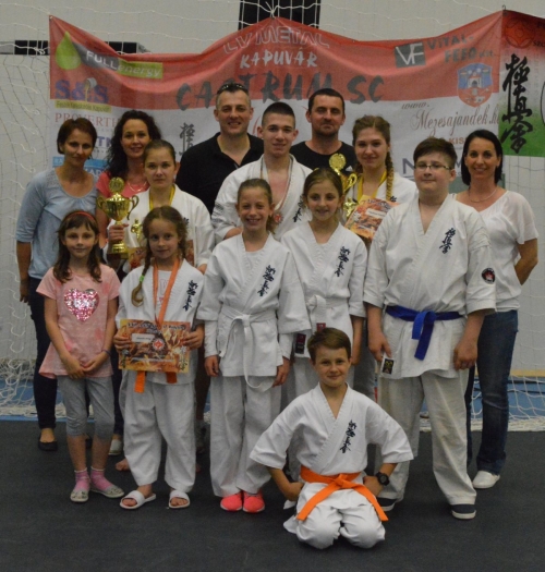 A Castrum SC Kapuvár utánpótlás versenyzői Tatán, a XXI. J&S Speed Kupa Országos Kyokushin Karate Bajnokságon szerepeltek, és hozták az érmeket városunkba. Sensei Pantelics Péter bevetette a legfiatalabb versenyzőit is. Ezúttal 2 arany-, 1 ezüst- és 1 bronzérem lett a kapuvári karatésok eredménye. Három ország (Szlovákia, Horvát-, és Magyarország) 41 klubjának 465 nevezője 5 küzdőtéren harcoltak a bajnoki címekért. A 8 fős Castrumos versenyzői gárda remek csapatmunkában dolgozott. A tapasztalt, most már több Európa Bajnoki címmel rendelkező junior versenyzők nem feledték milyen volt, mikor ők voltak kezdő Gyerek-I-es harcos palánták. Folyamatosan segítették a fiatalokat, és igyekezték oldani azok izgulását. Kisebb-nagyobb sikerrel. Gyermek I-ben Virág bronzérmet szerzett A Castrum SC legfiatalabb versenyzője Németh Virág még csak 8 éves, de már kiérdemelte első országos bronzérmét teljesítményével! Az elődöntőben volt némi pontelszámolás, a Castrumos versenyző hátrányára, de igaziból nem is az érmek csillogása, mind inkább a minél többszöri tatamira lépés volt a célja ennek a napnak. Szücs Hanna, Nyikos Eszter és Németh Jankó derekasan helytálltak, de ahhoz, hogy dobogóra léphessenek, előbb saját magukat kell legyőzniük. Izgulásuk, ólomsúlyként tartotta vissza őket remek formájuktó. Hoffer András a serdülő csoportban nem igazán a pontszerzésre törekedett. Ő inkább a folyamatos küzdelmet szerette volna felvállalni, amit ez a szabályrendszer mág kevésbé támogat. Ennek ellenére harciassága további sikereinek alapját képezi a Castrum utánpótlásában. Castrumos junior hölgyek előtt nem lehet megállni A küzdelmek során a junior női versenyzők szépen osztották a wazarikat, ipponokat. Bán Lili a női könnyűsúlyban, míg Végerbauer Roberta a női nehézsúlyban állhatott a dobogó legmagasabb fokára. Pantelics Bence ezúttal a junior férfi KATA versenyt kihasználva készül a nyári danvizsgájára, ahol ezüstérmével bizonyította remek technikai felkészülését. - Jó volt látni a legfiatalabb versenyzőinket is az országos mezőnyben harcolni. Virág ügyesen kamatoztatta a tanultakat, míg a többieknek le kell győzniük az izgulást, ha dobogóra szeretnének állni. Hamarosan ez is sikerülni fog! Ebben nagy segítségemre vannak Európa bajnok versenyzőim, akik nagy gonddal figyelnek kisebb társaikra. Büszke vagyok minden Castrumos harcosra. Junior Erópa Bajnok hölgyeim konkrét feladatot kaptak, és a versenyhelyzetben is sikeresen alkalmazták az itthon gyakorolt új kombinációkat! – mondta Sensei Pantelics Péter a Castrum edzője A Castrumban még nincs vége a versenyidőszaknak! Június és július is nemzetközi kihívásokkal várja az élversenyzőket! 2017. július 1-2-án Németh Veronika a 6. Súlycsoportos Világbajnokságon Kazahsztánban, Európa Válogatottként képviseli a Rábaközt a világ legjobb 32 női karatésa közt!Erről hamarosan bővebben is hírt adunk! A Castrum SC Kapuvár elnöksége, köszöni támogatóiknak, hogy ezen a nívós országos versenyen is segítették a csapatot! Twitter