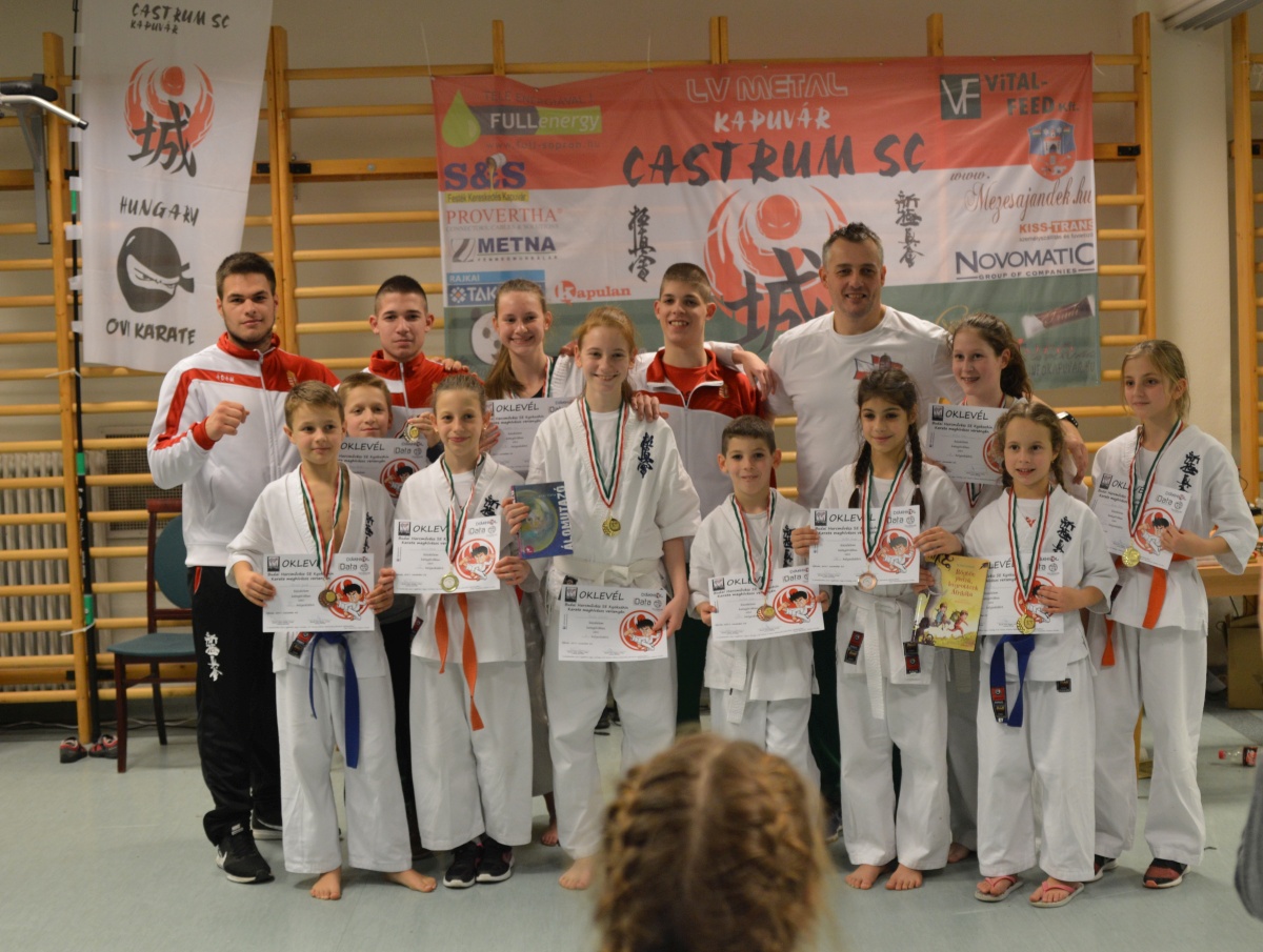 Sokat lehet olvasni a Castrum SC karate sikereiről. A bajnokok neve újra és újra feltűnik egy-egy médiában. Ám ezúttal új neveket kell megjegyeznie olvasóinknak. Szántó Ádám, Serfőző Lia, Hadarics Ferdinánd, Mészáros Zalán, Kiss-Mihály Bálint. Ők a legfiatalabb Castrumos versenyzők, akik már Budapesten is részt vettek az Újbuda Kupa Bajnokságon. 3 aranyérmet és 2 bronzérmet harcoltak ki, a legfiatalabbak. Igazi versenyhangulatba kóstolhattak bele a Castrum Ovikaratés harcosai, november 25-én szombaton Budapesten. Peti Sensei az utánpótlás karatésai mellett, a legfiatalabbakat is a küzdőtérre vezette. Míg idősebb társaik testpajzsos küzdelemben vettek részt, addig a legfiatalabbak a Csipeszharcban próbálhatták ki magukat. A Castrum Ovikaratésai Hadarics Ferdinánd, Serfőző Lia és Szántó Ádám aranyérmet, Németh Zalán, Kiss-Mihály Bálint pedig bronzérmet szereztek. Mi is az a Csipeszharc? 2-2 csipesz van felcsíptetve a versenyzők felkarjára és térde fölé. Az 1 perces küzdő idő alatt ezeknek a megmaradására kell vigyázniuk, illetve ellenfelükről begyűjteni a csipeszeket. A versenyt 3 bíró felügyeli, és dönti el, ki volt a gyorsabb, pontosabb és ügyesebb. Döntetlen esetén, vagyis ha egyforma számú csipeszt gyűjtöttek a versenyzők, hosszabbítás következik az ún. "ARANY CSIPESZÉRT"! Aki elsőnek szedi le a másikról a csipeszt, az győz. Ez a játék remek versenyzési lehetőséget kínál a legfiatalabbaknak, mivel itt próbára tehetik harciasságukat, küzdőszellemüket. Tanúbizonyságot adhatnak gyorsaságukról, és mentális felkészültségükről is. A Csipeszharc után az Utánpótlás remekelt Az öt Ovikaratés mellett 11 utánpótlás harcos is tatamira lépett a délután folyamán. Ők testpajzsban, a Kyokushin karate szabályai szerint vívták küzdelmeiket, melyben megintcsak a gyorsaság, pontosság és technikai felkészültség dominálhatott. A kapuvári karatésok nagyon szépen szerepeltek, és gyűjtötték a wazarikat, majd pedig a csillogó érmeket. Aranyérmesek: Németh Virág, Szücs Hanna, Nyikos Eszter, Fandák Ajándék Ezüstérmesek: Kovács Kitti, Bacsó Márton és Csonka Lili (utóbbi versenyző a különdíjat is kiérdemelte teljesítményéért!) Bronzérmesek: Serfőző Hanga, Serfőző Zalán, Németh János és Bertha Lili "- Nem hiszek a véletlenekben. Legalábbis a küzdősporteredmények terén nem. Ha a fiatalok megkapják azt a terhelést, és felkészítést ami az életkorukhoz, és képességeikhez elvárható, akkor az eredmények nem maradnak el. A Castrum élversenyzői, mint Németh Veronika, Pantelics Bence, Végerbauer Roberta, Bán Lili és Németh Márk mögött ott dübörög az utánpótlás. Méltó példaképek a fiatalok számára, akik együtt készülnek a versenyekre. Öröm látni ahogy az Ovikaratésok felnéznek az Európa bajnokokra (holott ők még azt sem tudják, mi az az Európa), és nem csak az edzéseken találkoznak egymással, hanem a Castrumos partikon, családi rendezvényeken is közösen ünnepelnek. A Castrum nem csak egy sportegyesület, hanem egy nagy család, egy erős közösség, ahol kicsinek, nagynak kiérdemelt helye van!" - nyilatkozta Sensei Pantelics Péter edző December 2-án Várpalotán, a 2017-es Palota Kupán versenyeznek az utánpótlás harcosok 13-an. Itt a fiatalság mellett egy 46 éves karatéka is megméretteti magát, Felnőtt C kategóriában. December 6-án pedig Németh Veronika edzőjével az oroszországi Ekatyerinburgba utazik, ahol a 3. KWU Súlycsoportos Világbajnokságon méri össze erejét 4 Világszervezet legjobb versenyzőivel. Twitter