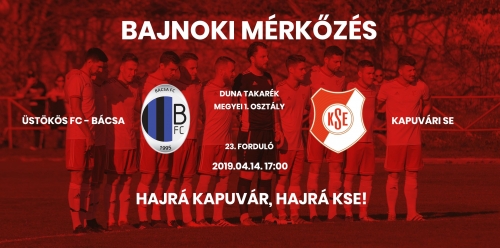 Duna Takarék Megyei I. 23. fordulóban 2:0-s vereséget szenvedtünk a házigazda Bácsa csapatától. A mérkőzést 2019.04.14-n 17 órakor játszották. Íme a videó összefoglaló: Twitter