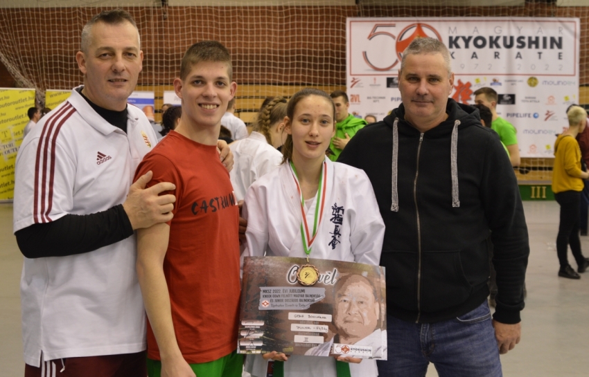 Debrecenben, az Oláh Gábor úti Sportcsarnokban gyűlt össze a Kyokushin Karate krémje, hogy ünnepélyes keretek közt ünnepelje a Magyar Kyokushin „születésének” 50. évfordulóját. A jeles rendezvényen sajnos a tavalyi esztendőben elhunyt egyik alapító nagymester Shihan Furkó Kálmán már nem vehetett részt, tanítványai egésznapos Knock Down versenyen tisztelegtek a nemzetközi vendégek, és hazai mesterek előtt. A jubileumi Felnőtt Magyar Bajnokságon, a junior korosztály is összemérhette tudását. A versenyen megyénkből Sensei Mótzer Melinda tanítványa Szalay Berta a női -65 kg-os kategóriában szerzett Magyar Bajnoki címet, míg Sopronból a SMAFC -85 kg-os harcosa Ferenczy Csongor (mestere Shihan Demeter Zsolt) a dobogó harmadik fokára állhatott. A Castrum SC Kapuvár Covidtól tépázott csapatát a junior női -55 kg-ban Gere Boglárka képviselte (edzője: Sensei Pantelics Péter) aki két győztes küzdelmet követően bronzérmet szerzett. Az április 2-i Felnőtt Shinkyokushin Európa Bajnokságon Szalay Bertának kumite-ben, míg Pantelics Bencének KATA formagyakorlat versenyszámban szurkolhatunk majd Lengyelországban. „- Remek versenyszervezésnek köszönhetően méltó körülmények közt ünnepelhettük a Kyokushin Karate 50. születésnapját. Nemzetközi vendégek tisztelték meg a debreceni rendezvényt, ahol a magyar versenyzők látványos küzdelmeket vívtak. Örömmel szurkoltunk Csongornak, és Bertának, és a „Shines” harcosoknak. Sajnáltuk, hogy a Castrumos csapat teljes létszámát a COVID megtépázta. Sajnos ez ellen tenni nem tudtunk, a vírus érkezik, és még a legjobb harcosokat is ledönti. Gere Bogi teljesítményével elégedettek vagyunk, és dolgozunk tovább, hogy a Diákolimpia döntőre még jobbak legyünk és fényesebb eredményt hozzunk! Jó belegondolni, hogy a Kyokushin karate már 50 éves hazánkban, és az elmúlt majd 40 esztendőben a Castrum is részese volt a Knock Down Karate sikereinek.” – nyilatkozta Sensei Pantelics Péter a Castrum edzője. Twitter