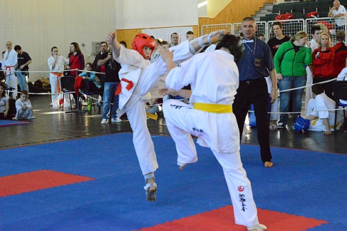 Kapuvár karatésai, már javában készülnek a márciusi Kyokushin Karate Diákolimpia elődöntőjére. Szombaton 19 fős versenyzői csapattal vonultak fel, a III. Renmei Kupa 2014 meghívásos Kyokushin Karate versenyen. 26 klub, 241 versenyzője harcolt a 4 tatamin. A Castrum legifjabbjai is kipróbálhatták magukat 3 héttel a Diákolimpia előtt. A kapuvári karatésok a szombati napjukat, a Tatabánya melletti Tarjánban töltötték, és barátságos, komolyabb tét nélküli versenyen mérték össze tudásukat társaikkal. A labdarúgásban amolyan edzőmérkőzésnek szokták nevezni az ilyent, de a küzdősportban ez mégis más. A gyerekek kisebb csoportokba osztva körmérlőzéseket vívtak ellenfeleikkel, így azok, akiknek esetlegesen nem sikerült az első küzdelem, még a következőkben javíthattak teljestményükön. Nagy jelentőséggel bírnak ezek a megmérettetések, mivel az új versenyzőknek szokniuk kell azt a környezetet, ahogy az adrenalinnal teli sportolók, bírók és edzők felfűtenek egy sportcsarnokot. Kiss Benedikta, Bárkovics Nóra, Papp Csongor, Dezamics Bence, Szalai Benedek, Dukai Norbert, Filó Bence, Gelbman Andreas és Bán Lili, is ügyesen helytállatak, a tatamin. A Castrum edzői, pedig kaptak egy képet a versenyzőkről, hogy a várpalotai Kyokushin Karate Diákolimpia Nyugat-Dunántúli elődöntőjéig, még mit kell gyakorolniuk, hogy hasonló szép eredményt, vagy még jobbat nyújtson a csapat. Castrum SC Eredmények: Gy.I. ffi_1: I. Király Zsolt Siófo KSENémeth Veronika nagyobb súlycsoportban is eredményes (jobbról) II. Papp Csongor Castrum III. Bódi Adám VTSE III. Kiss Márk Rakurai Gy.I. ffi_2: I. Szalai Benedek Castrum II. Schlauszki Adám ARSC III. Ráduly Botond BHMSE III. Fekete Bence BHMSE Gy.I. ffi_7: I. Németh Raul Castrum II. Ludszky Tamás Főnix Dojo III. Kocsis Bálint Enying VSE III. Dan Balázs Gyula Kamikaze S Gy.I. ffi_8: I. Dezamics Bence Castrum II. Faragó Barnabás VTSE III. Kiss Márk Gábor MKK III. Lencsés László Kamikaze S Gy.I. női_1: I. Kovács Vivien VTSE II. Bárkovics Nóra Castrum III. Leitner Petra Főnix Dojo III. Esztrenga H. Viktória BHMSE Gy.II.ffi_kzd_8: I. Dezamics Máté Castrum II. Dukai Norbert Castrum III. Borsodi Endre Castrum Gy.II.női_1: I. Molnár Brigitta Castrum II. Palcsó Szabina Siófo KSE III. Kiss Benedikta Castrum Gy.II.ffi_hld_1: I. Jerkó Dominik Castrum II. Markó Csanád Cs.S.E. III. Szabó Dániel MGK Se III. Pozsonyi Péter BHMSE Gy.II.ffi_hld_2: I. Jenei Bálint Sámuel BHMSE II. Szalai Sámuel Castrum III. Szücs Ferenc MGK Se III. Orbán Kevin Kiai Dojo Gy.II.ffi_hld_5: I. Virág Dániel MKK II. Ujj Misa BHMSE III. Németh Bendegúz Castrum Srd.ffi_kezdő_1: I. Capu Dominte Renmei se II. Bauer Bence Renmei se III. Elek Roland ARSC III. Gelbmann Andreas Castrum Srd.ffi_kzd_3: I. Palcsó Patrik Siófo KSE II. Filo Bence Castrum III. Marikovecz Attila Wasabi KKT III. Antal Krisztián Renmei se Ifj.ffi.hld_1: I. Körmendi Adrián Főnix Dojo II. Kovács Róbert Castrum III. Németh Márk Castrum Ifj.női_2: I. Rudniczai Vanda Siófo KSE II. Bán Lili Castrum III. Szekeres Nikolett Főnix Dojo Jun.női_hld: I. Németh Veronika Castrum II. Kovács Eszter Cs.S.E. III. Horváth Ramóna Kiai Dojo Többet szeretnél tudni az egyesületről? - www.castrumsport.hu Twitter