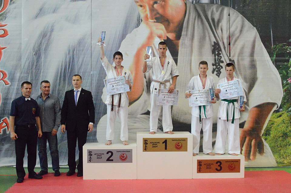 Lezárult a Castrum tavaszi versenyidőszaka. Pantelics és Végerbauer 3 ezüstérmet hozott az Austrian Open Kyokushin Karate nemzetközi bajnokságról. Megérdemelt a munkával zajló pihenés. A tavaszi időszak utolsó versenyén indult a Castrum SC Kapuvár. A szomszédos Ausztria "csataterét" ostromolták városunk karatésai.Az Austrian Openen 10 ország (Ausztria, Csehország, Grúzia, Németország, Ukrajna, Svédország, Lengyelország, Szlovákia, Horvátország és Magyarország) képviselte magát. A Castrum két ifjúsági verenyzővel (Végerbauer Roberta és Pantelics Bence) nevezett az osztrákok bajnokságára. Austria Open 2014. Pantelics Bence II. helyPantelics Bence formagyakorlatban is tatamira lépett, ahol 7 induló közül került a dobogó II. fokára. A Kata verseny után, Kumite-ben is megmérettetett. A verseny a szokásos egyenes kiséses rendszerben zajlott. Míg az ifjúsági fiúknak 18 induló közül kellett bizonyítaniuk, addig a lányoknak egy szerényebb 7 fős mezőnyből kellett felküzdeniük magukat a dobogóra. Pantelics Bence előbb egy svéd társát rúgta kétszer fejbe, majd fejrúgásait osztva, két lengyel karatéson át vezetett az útja a döntőbe, ahol magyar riválisával, a siófoki Hegedűs Bendegúzzal vívták csatájukat. A siófoki versenyző gyors lábai Bence védelme mögé kampóztak, és így a kapuvári fiúnak az ezüst csillogásával kellett megelégednie. Austria open 2014. Végerbauer Roberta akcióbanVégerbauer Robertának szintén jutott a lengyel harcmodorból, igaz csak pár másodpercig. Roberta fürge lábával lekaszálta ellenfele fejét, majd egy iszonyú erejű testre mért frontális rúgással, testpajzson keresztül (!) KO-zta le vetélytársát.A döntőben a jászberényi Mező Lilit hajtotta, akinek (szabálytalan) gerincütését az osztrák bírók ponttal jutalmazták. Roberta ezért a kellemetlenségért az idő rövidsége miatt már nem tudott elégtételt venni, így neki is a díszes ezüstérem jutott a vasárnap délután. - "Ez a verseny, egy kíváló képet mutatott, hogy milyen munkát kell még elvégeznünk az októberi Ifjúsági Kyokushin Karate Európa Bajnokságig. Bepillanthattunk a nemzetközi mezőny ifi harcmodorába, és a nyarat szokásunkhoz híven most sem pihenéssel, hanem edzőtáborozással, edzéssel töltjük.A Castrum nem pihen, hisz a gyerekeknek a nyáron van a legtöbb idejük, hogy mozogjanak. Ilyenkor nincs iskola, és nem hagyhatjuk, hogy a számítógépek mellett punnyadjanak. Edzőtáborok, szemináriumok, és a heti 3 edzés várja a sportolóinkat a nyáron. Készülünk az őszi szezonra, az övvizsgákra." - nyilakozta Pantelics Péter, a Castrum elnöke. Pantelics Bence, Pantelics Péter és Végerbauer Roberta - Az ezüst mosoly További képek, a Castrum SC Facebook oldalán! CASTRUM FACEBOOK Twitter